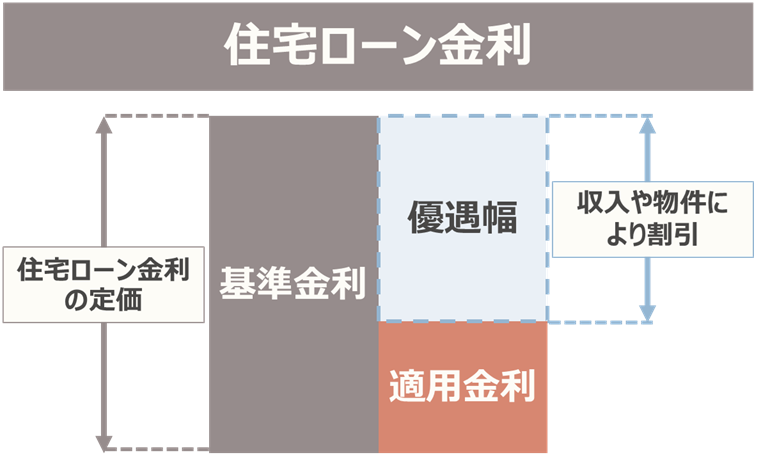 基準金利 - 優遇幅 = 適用金利(実際に払う金利)